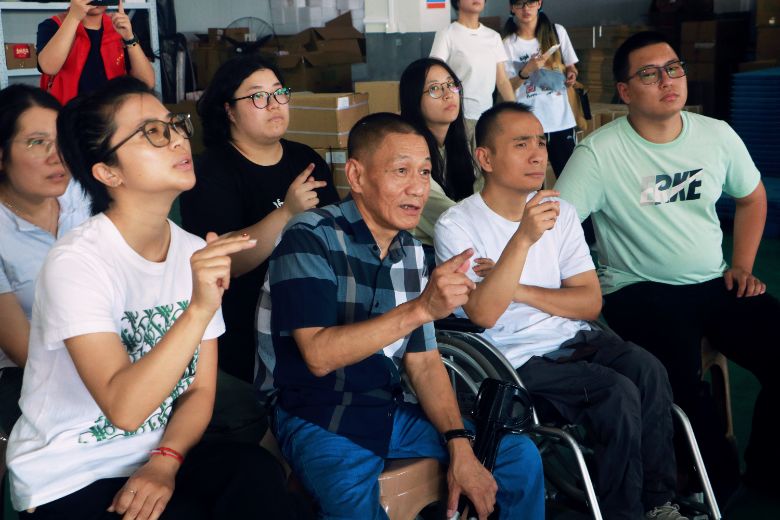 在前期學(xué)習(xí)基礎(chǔ)上,實(shí)踐團(tuán)奔赴蕭山區(qū)助殘扶貧科創(chuàng)園,開展手語教學(xué)活動(dòng),并圍繞殘障人士的溝通需求與生活狀況展開采訪調(diào)研。