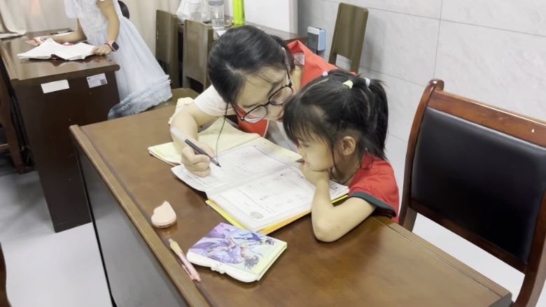 夏日炎炎,驕陽似火,由于學校部分教室未裝空調(diào),為給孩子們創(chuàng)造舒適的環(huán)境,學校靈活調(diào)整課表,于下午13時50分將孩子們集中到有空調(diào)的教室。這里,支教隊員們化身“作業(yè)輔導員”,耐心解答孩子們的疑惑,幫助他們鞏固知識,攻克難題。