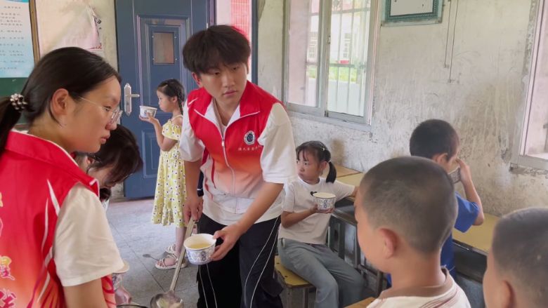 下午15時30分,學校貼心地為孩子們準備了銀耳湯。支教隊員們忙碌著為孩子們打好銀耳湯,孩子們喝著香甜的銀耳湯,臉上洋溢著滿足的笑容。