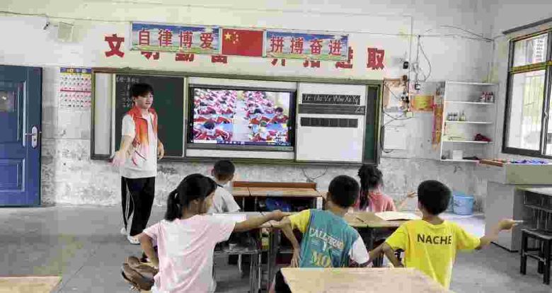 七月的晨光帶著暑熱,灑滿支教點的操場。樹葉閃閃發亮,蟬鳴漸起,卻蓋不住教室里溢出的歌聲與歡笑——這是滿天星支教隊第六天的日常,在熾熱夏日里播撒著溫柔與希望。