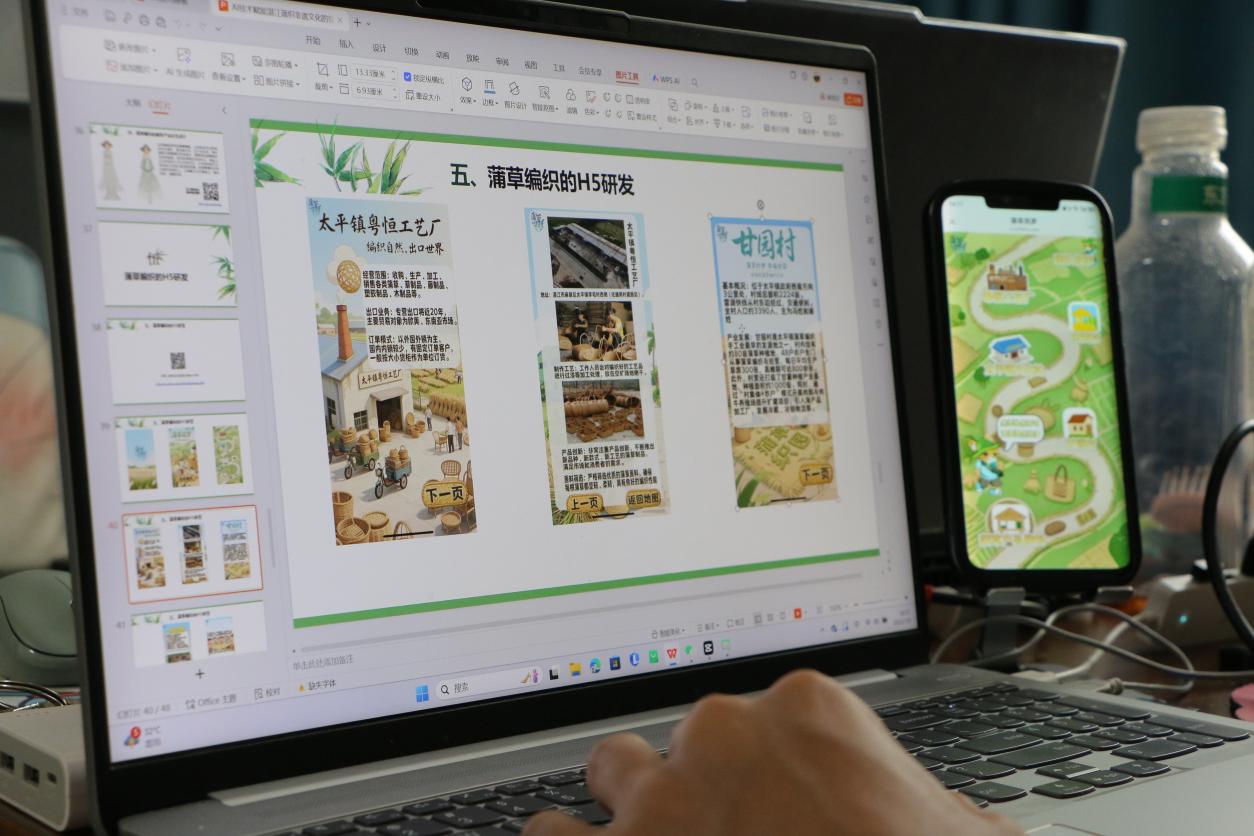 蒲草筑夢實踐團設計組成員以專業設計能力為依托,深度挖掘蒲草文化與實用價值,通過系統性、