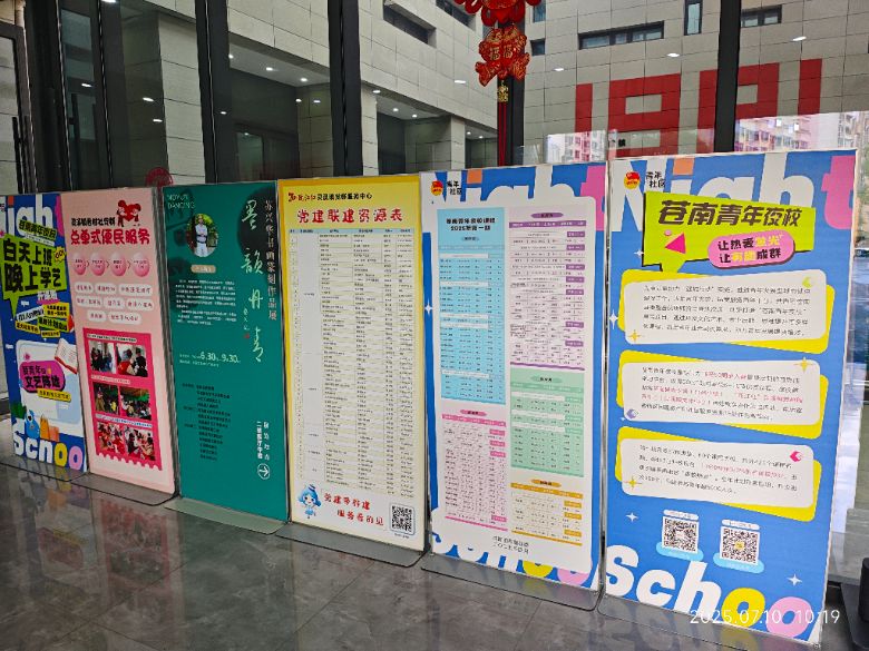 從現(xiàn)場陳列展板可見,黨群服務(wù)中心過往活動豐富多元。有聚焦“白天上班,晚上學(xué)藝”的技能提升課程,打造青年文藝陣地;推出“點單式便民服務(wù)”,精準(zhǔn)對接居民需求;還舉辦蘇興華書畫篆刻作品展,以藝術(shù)浸潤生活,更通過黨建聯(lián)建資源表,串聯(lián)多方力量,構(gòu)建起服務(wù)協(xié)同網(wǎng)絡(luò)。這些活動沉淀下成熟的場地運(yùn)營經(jīng)驗、群眾動員能力與資源整合模式,為“家門口青少年宮”落地筑牢根基。