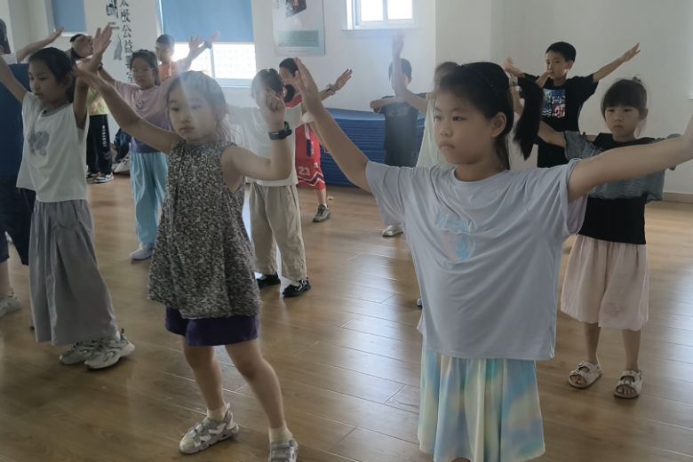 舞蹈課很簡單,支教團隊選了一首歡快的音樂,教孩子們幾個基礎動作。剛開始,孩子們有些害羞,扭捏地站在后排不敢動。老師們就先跳給他們看,故意把動作做得夸張些,逗得孩子們咯咯笑。慢慢地,幾個膽大的孩子開始跟著比劃,其他孩子也漸漸加入進來。