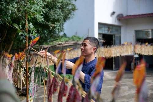 抵達博物館時恰逢傳統曬皮影日,團隊成員與湖南省省級非遺傳承人吳升平先生深度訪談,聽他講述紙影歷史、制作工藝及自己與紙影的故事。吳淵老師在陽光下晾曬色彩明艷、雕刻精美的皮影,每處細節都蘊含匠人心血。在紙影制作工坊,吳淵老師介紹,一個紙影制作要經選皮、制皮、單雕等二十多道工序,雕刻需用壞數十把刀具。