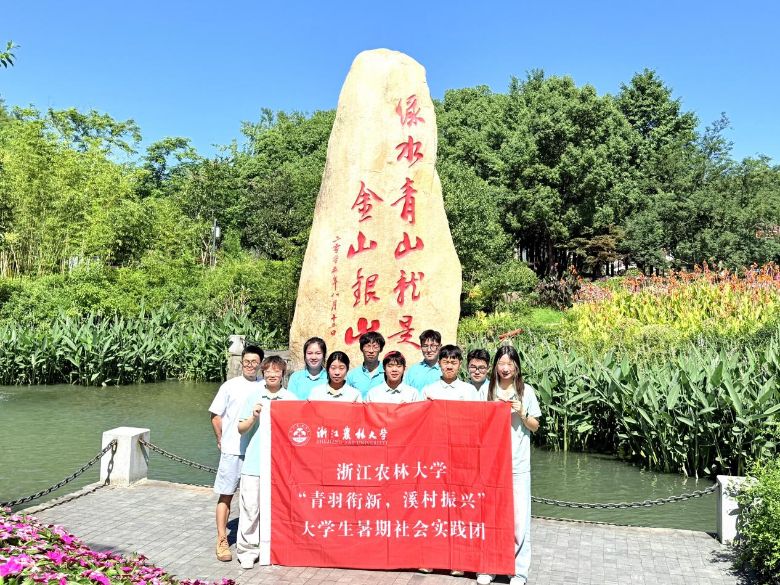 當夕陽為余村的竹海鍍上金邊,實踐團在石碑前舉起畫筆造型合影。這群青年用腳步丈量初心之地,更將以創意點燃振興星火——因為每一代人都要走好自己的“兩山”之路,而這條路上,青春永不缺席。