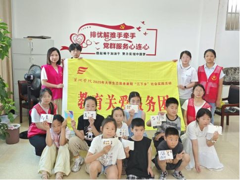圖一7月2日與當地政府對接 這支由數學與應用數學(師范)、大數據管理與應用專業組成的實踐隊,以“關愛兒童,打造七彩假期”為目標,從少先隊引領到藝術培養,從體育互動到心理關懷,為孩子們編織多維成長的“守護網”。抵達首日,成員們顧不上休息,擺開貼畫、小紅旗等獎勵品和教學用具,期待與孩子們的第一場互動。