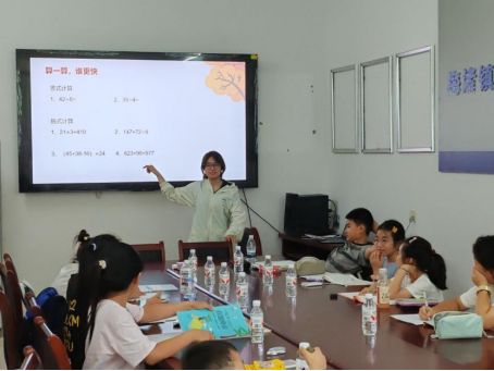 圖二、王瑞在訓練孩子們的計算能力實踐隊還開展多樣化課外宣講。李艷通過案例、PPT和視頻普及防溺水知識,提供學業輔導與藝術指導。課程強化了自我保護意識,增強文化認同,提升學習能力,助力孩子全面發展。孩子們說:“沒想到學習這么有趣!教學內容太吸引人了!”