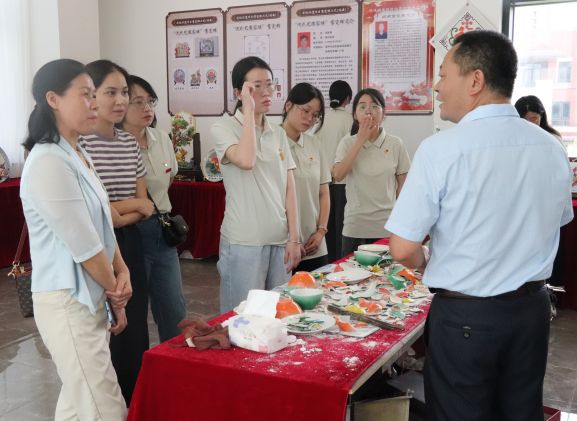 在詔安文化藝術中心非遺展館,詔安縣博物館館長許焜武為實踐隊員們講述剪瓷雕的歷史淵源、制作流程及其獨特的地域文化特色,并介紹了詔安非遺產業及剪瓷雕相關的扶持舉措,使隊員們真切感受到了當地文旅部門在非遺保護與傳承上所做的努力,也對剪瓷雕這項傳統工藝的當代發展有了更立體的認識。