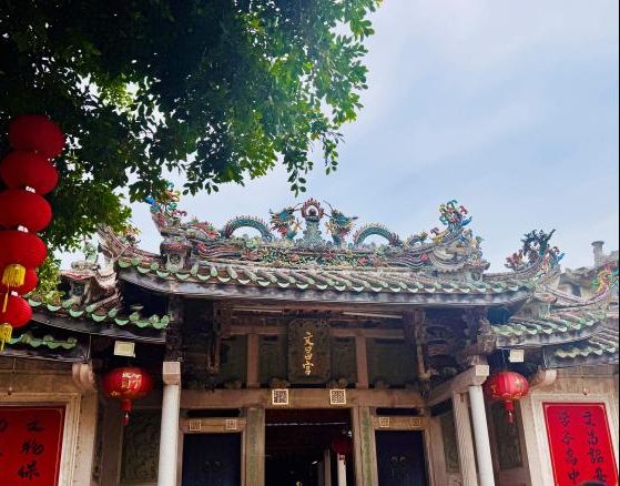 在詔安縣博物館館長許焜武的帶領下,實踐隊走進關帝廟、城隍廟、文昌宮和關天大帝廟等廟宇,實地考察剪瓷雕這一傳統工藝在閩南建筑中的藝術呈現。這些廟宇的屋脊飛檐、翹角斗拱之上,無不裝飾著栩栩如生的剪瓷雕作品,將傳統工藝與建筑美學完美融合。許館長現場為隊員們詳細講解了剪瓷雕的紋樣布局、工藝特點及其蘊含的地方信仰內涵,并提到“剪瓷雕工藝得以延續,正因為其扎根于百姓日常生活與精神信仰之中”。實踐隊隊員小楊感慨:“剪瓷雕不僅是精美的建筑裝飾,更是地方文化與信仰的重要載體。”