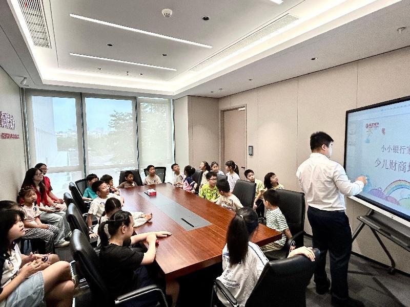 圖為銀行的員工叔叔為小朋友們進行講解 張琦攝