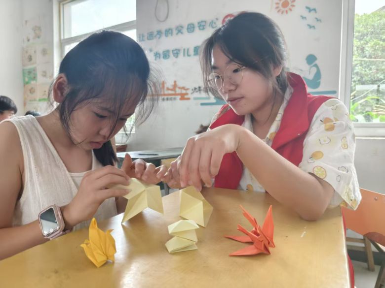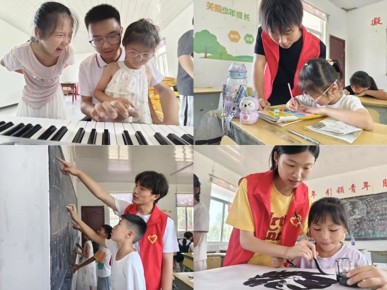 實踐團聚焦孩子成長需求,打造多元課堂。音樂課堂上,志愿者手把手教孩子們彈奏電子琴,讓靈動音符在指尖跳躍,開啟藝術感知之門;國畫課中,志愿者示范運筆用墨,帶領孩子領略傳統水墨韻味,在宣紙上描繪童真世界;課業輔導時,志愿者耐心答疑解惑,助力孩子鞏固知識、攻克難題,讓學習更具溫度。從藝術啟蒙到知識鞏固,每一堂課都凝聚著志愿者的用心,成為孩子們暑期難忘的成長養分。