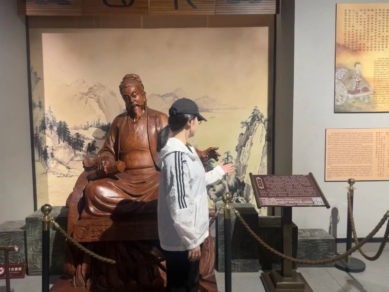 在兵圣宮內,實踐隊隊員依次參觀了孫子文化展示區、戰陣演練區、戰役回眸區和古代將帥區。在孫子文化展示區,通過大量的文物、圖片和多媒體展示,實踐隊隊員深入了解了孫武的生平事跡和《孫子兵法》的誕生背景。從孫武的成長經歷,到他在吳國的軍事生涯,再到《孫子兵法》的創作與傳承,每一個故事都讓實踐隊隊員對這位偉大的軍事家有了更深刻的認識。