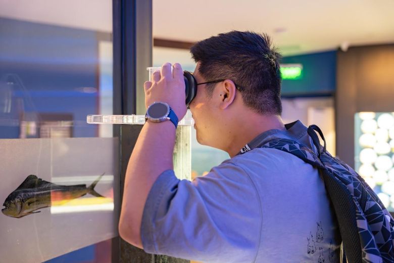圖為實踐隊伍在館內學習捕魚作業知識 潘弈攝
