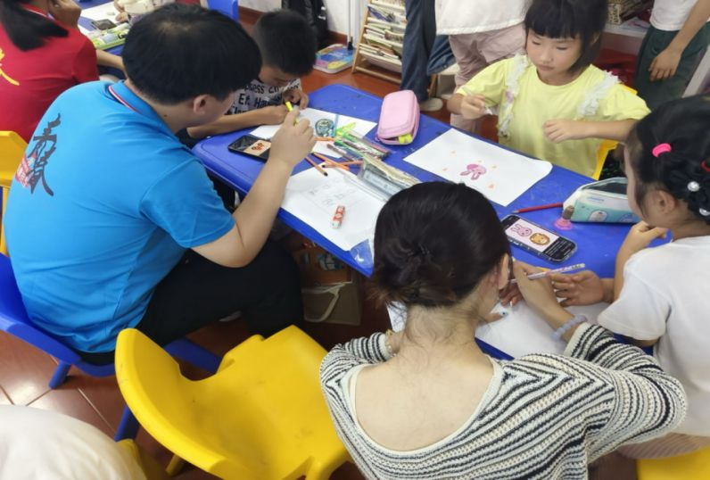 最后一站,我們去往崗嶺社區黨群服務中心,在與孩子們的相處過程中,我也感觸頗深。社區的窗外,七月的蟬鳴拖得老長,來之前總覺得,我們是帶著課本上的知識來的,該是我們教他們些什么,可真跟這些孩子待在一起才發現,根本不是這樣。他們的眼睛亮得像浸了水的星星,在畫不出彩色農場時急得抿嘴,重新拿起筆又格外認真的樣子,比任何課本都讓人明白:所謂教育從來不是單向的。我們帶過來的或許是知識,但他們給我們的,是那種最純粹的、對世界的熱乎勁兒——這比任何教案都珍貴,讓我往后再想起“教育”兩個字,心里先冒出來的,是他們渴望知識的亮閃閃的笑容。