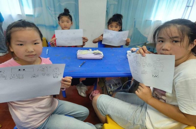 藝術的種子也在社區悄然發芽。在“童心繪世界”繪畫活動中,孩子們拿起五彩畫筆,描繪心中的美好世界。有的畫可愛的卡通人物,有的畫自己想象中的東西。活動現場,志愿者耐心指導,鼓勵孩子們大膽創作。當一幅幅充滿童真與創意的作品完成時,孩子們臉上洋溢著自豪的笑容。隨后,老師將畫展在教室墻面,一幅幅充滿童真的畫作像綻放的花朵般次第鋪開,引得大家相互欣賞。