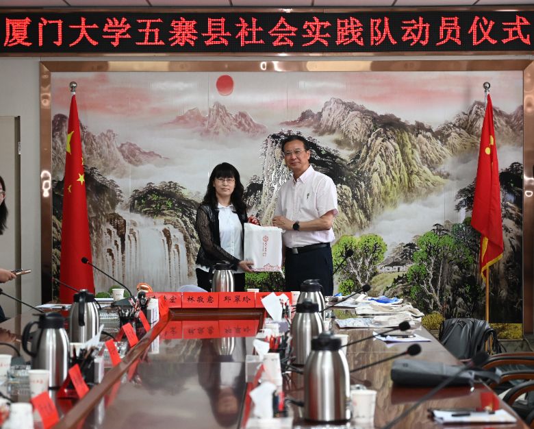 為深化校地合作內(nèi)涵,推動(dòng)"創(chuàng)意五寨?美潤(rùn)豐年"實(shí)踐活動(dòng)高質(zhì)量開(kāi)展,7月11日,廈門(mén)大學(xué)五寨縣社會(huì)實(shí)踐動(dòng)員會(huì)在五寨縣人民政府隆重舉行。會(huì)議由五寨縣委常委、組織部長(zhǎng)、統(tǒng)戰(zhàn)部長(zhǎng)張春蘭主持,廈門(mén)大學(xué)黨委原副書(shū)記、校關(guān)工委常務(wù)副主任賴(lài)虹凱,廈門(mén)大學(xué)團(tuán)委副書(shū)記鄭音,廈門(mén)大學(xué)創(chuàng)意與創(chuàng)新學(xué)院副院長(zhǎng)甘森忠,集美大學(xué)團(tuán)委副書(shū)記蔡文舟,廈門(mén)大學(xué)團(tuán)委兼職副書(shū)記王少彬以及廈門(mén)大學(xué)、集美大學(xué)師生代表與五寨縣相關(guān)部門(mén)負(fù)責(zé)人齊聚一堂,共繪校地合作新藍(lán)圖。