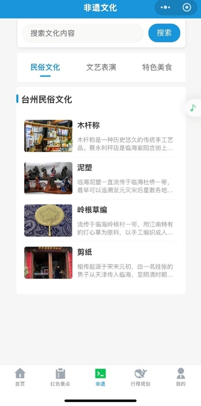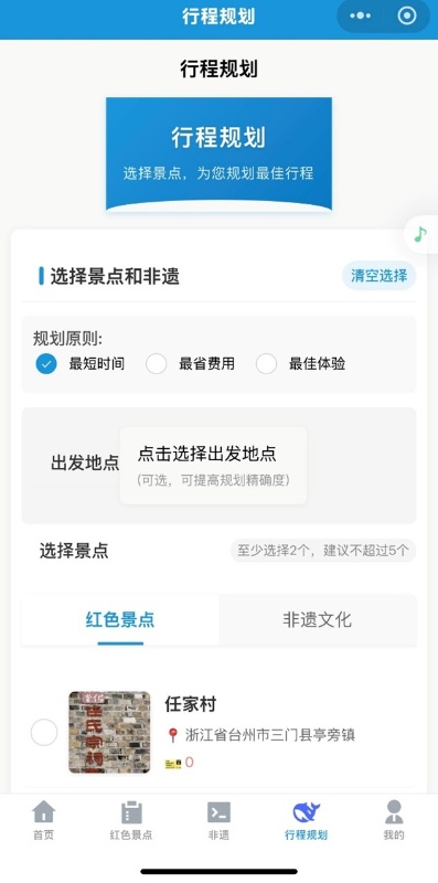 團(tuán)隊(duì)秉持著“促進(jìn)臺州文旅的宣傳,并且更為便捷的查詢臺州景點(diǎn)”這樣的初心,結(jié)合本專業(yè)特色,運(yùn)用計(jì)算機(jī)技術(shù),成功在微信上傳團(tuán)隊(duì)制作的小程序,其整合了鄉(xiāng)村文旅融合資源,便于游客查詢和探索歷史,又進(jìn)行了創(chuàng)新,即為使用者規(guī)劃最適宜的旅游路線。