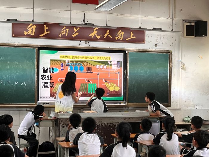 在講解智能灌溉時,示意圖展示了“傳感器監(jiān)測-自動供水”的閉環(huán)流程,智能溫室可動態(tài)調(diào)控環(huán)境以抗御極端天氣。課程通過解答孩子們“科技咋比農(nóng)民更懂植物”的疑問,傳遞科技賦能生態(tài)的理念,助力孩子們樹立科技護綠、賦能鄉(xiāng)村生態(tài)產(chǎn)業(yè)的意識。