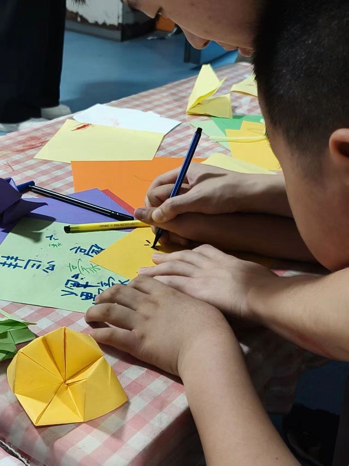 在活動現場,孩子們在志愿者的耐心引導下,積極參與各項手工活動。他們跟著志愿者學習扭扭棒創作,用彩色的扭扭棒制作出各種可愛的造型;在繪畫環節,孩子們用畫筆描繪出自己心中的世界;折紙活動中,志愿者們手把手傳授技巧,孩子們認真學習,一步步折出精美的作品。這些活動不僅鍛煉了孩子們的動手能力,更重要的是,在互動過程中,孩子們逐漸打開心扉,主動與志愿者溝通交流,提升了溝通技能與情感表達能力。