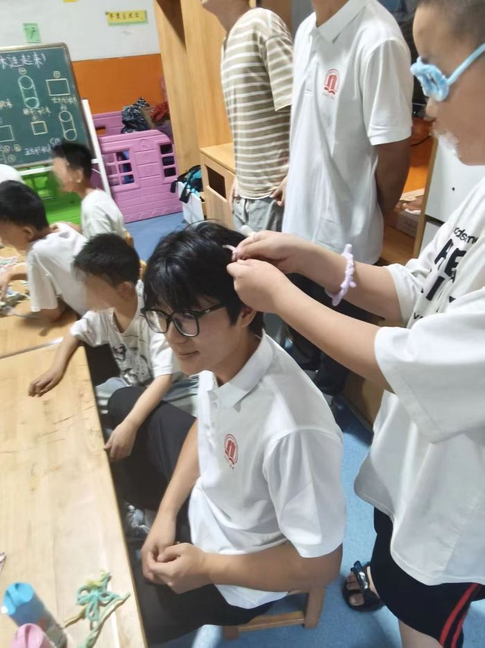 活動中,孩子們用自己獨特的方式表達對志愿者的喜愛。有的孩子將自己完成的手工制品送給志愿者,有的則為志愿者佩戴上自己制作的小飾品,每一個舉動都充滿了真誠與溫暖。志愿者們也全身心投入,用鼓勵的話語和親切的笑容回應著孩子們,讓他們在輕松愉快的氛圍感受到被關注和被關愛中。