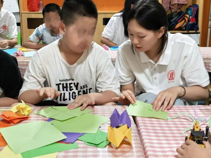 活動現場洋溢著溫馨的氛圍。志愿者們耐心十足,手把手地教孩子們用扭扭棒制作各種有趣的造型,和他們一起在畫紙上盡情揮灑創意,還細致地傳授折紙技巧。孩子們在志愿者的陪伴下,臉上洋溢著燦爛的笑容,他們專注地投入到各項活動中,感受著來自志愿者的關愛。這種真誠的互動,讓愛心如同涓涓細流,慢慢浸潤著孩子們的心靈。