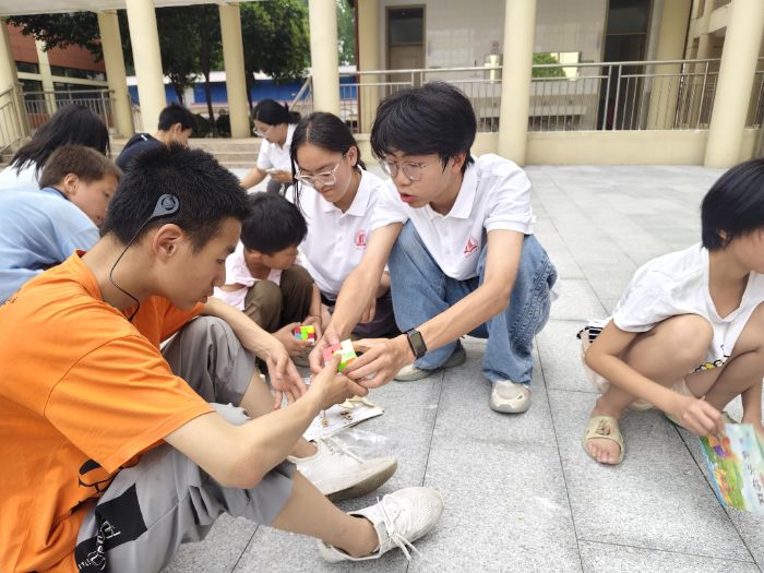 魔方的教學中,志愿者講解著基本玩法,孩子們聽得格外認真。有個孩子很快就掌握了技巧,還反過來教其他同學,志愿者在一旁看著,心中滿是欣慰。孩子在教會別人的過程中增強了自信,志愿者也從孩子的聰慧中看到了無限可能。