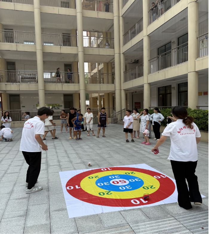 沙包投擲活動中,志愿者示范著投擲技巧,孩子們模仿著動作,雖然起初扔得不遠,但志愿者每次都跑過去撿回來,鼓勵他們再試一次。當一個男孩終于將沙包投到了目標區域,他興奮地跳起來,和志愿者擊掌。志愿者被孩子的快樂所感染,而孩子也在一次次嘗試中體會到了堅持的意義。