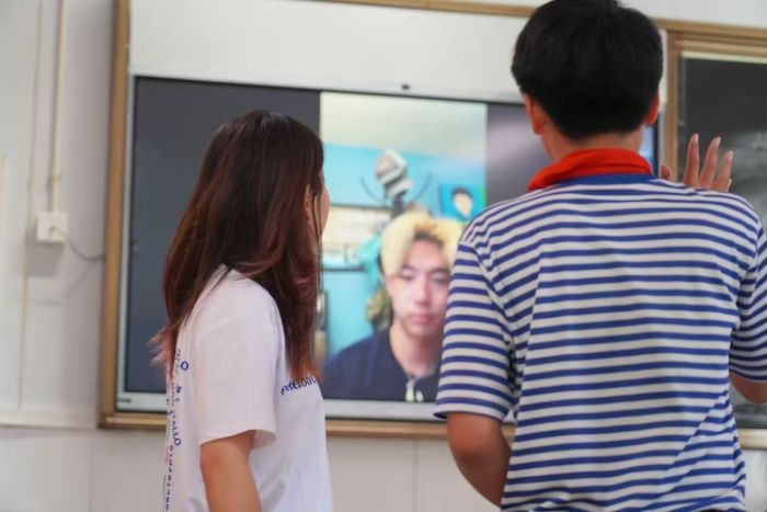 “跨國云端對話” 成為課堂最大亮點。實踐隊提前聯絡海外友人,搭建視頻連線平臺。當外國友人用英語問候時,孩子們在老師鼓勵下克服羞澀,主動舉手回應,實現了與母語者 “面對面” 交流的突破。這種真實的語言環境,極大激發了學生的表達欲望。
