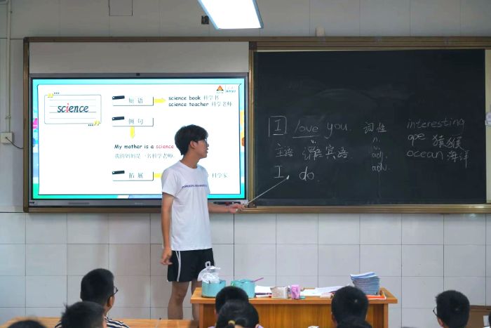 幾日教學中,孩子們的轉變印證了實踐活動的價值。低年級學生已能用簡單英語自我介紹,清晰說出姓名、年齡與愛好,眼神中充滿自信;高年級學生的課堂筆記上,不僅記錄著單詞、句型,還配有自創插圖輔助記憶,字里行間滿是認真態度。從 “不敢開口” 到 “主動交流”,從 “陌生抵觸” 到 “好奇熱愛”,孩子們的成長讓實踐隊隊員倍感欣慰。