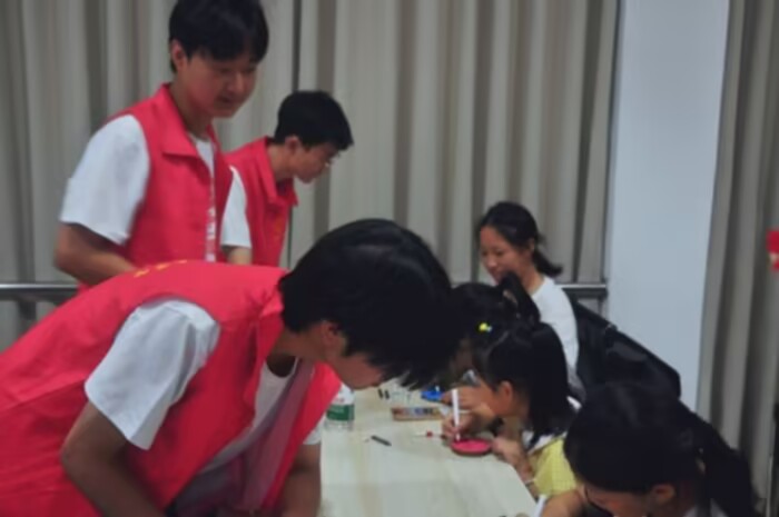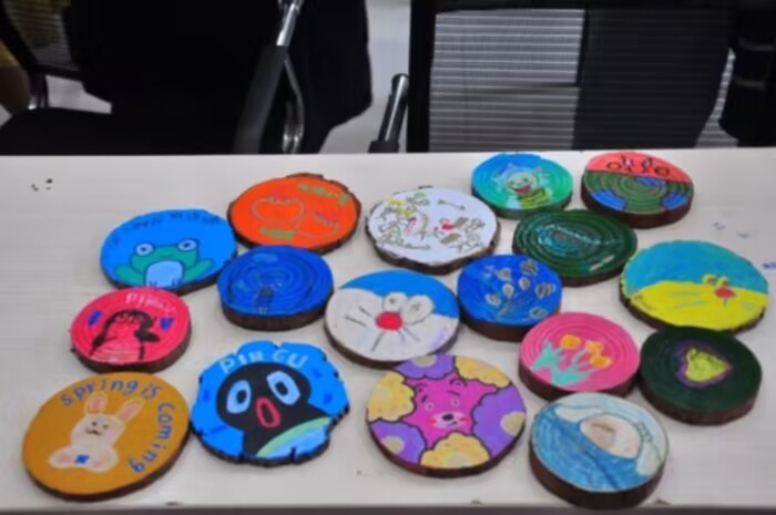 為深化文化體驗,志愿者小袁帶領孩子們進行圓木片創意繪畫。他現場寥寥數筆的生動演示,立刻點燃了孩子們的創作熱情。志愿者們分組指導、守護,孩子們紛紛在木片上揮灑想象力:可愛的玉桂狗、絢麗的郁金香、乖巧的小兔子……一幅幅充滿童趣的作品躍然眼前,孩子們在藝術創作中感受美,也延續著創造精神。