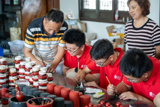在北川羌族水磨漆器工坊,非遺傳承人張壽榮老師向?qū)嵺`隊(duì)員講解了選料、制胎、上漆、繪圖案等制作工序,每步都凝聚著數(shù)代人的經(jīng)驗(yàn)與堅(jiān)守。隨后,隊(duì)員們親身體驗(yàn)了繪圖案這一重要環(huán)節(jié),直觀感受到了水磨漆器技藝的精妙。大家從這一技術(shù)中體會(huì)到羌族人民對(duì)生活的熱愛(ài)與對(duì)美的追求,這項(xiàng)承載羌族歷史記憶和文化傳承的工藝,已成為各民族了解羌族文化的重要窗口。