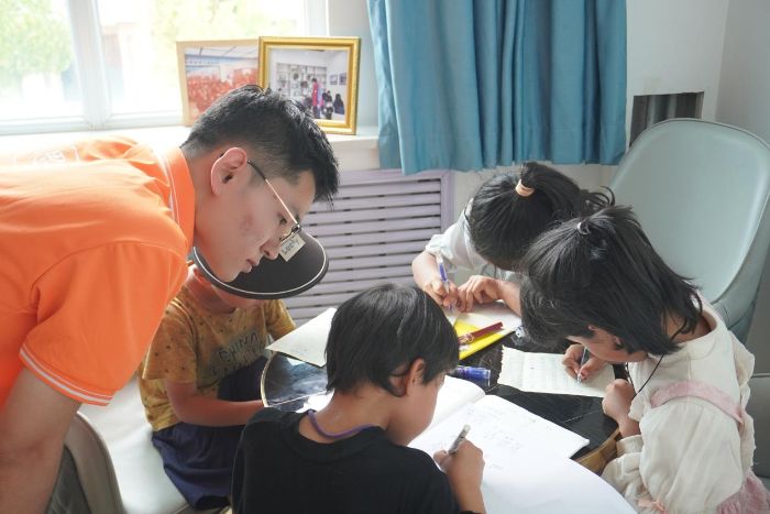 在社區活動室里,30余名孩子整齊有序的坐著,隊員們分散其中,耐心解答孩子們在數學、語文、英語等學科上的疑難問題。來自東鄉族的小女孩馬曉燕拿著數學練習冊向志愿者請教問題,志愿者劉文博俯身拿起草稿紙,一邊畫圖示意,一邊用通俗易懂的語言講解解題思路,直到馬曉燕露出恍然大悟的笑容。作業輔導間隙,實踐隊還組織了豐富多彩的娛樂活動。“我們希望通過這些活動,不僅幫助孩子們解決學習上的難題,更能讓他們感受到來自外界的關愛。”