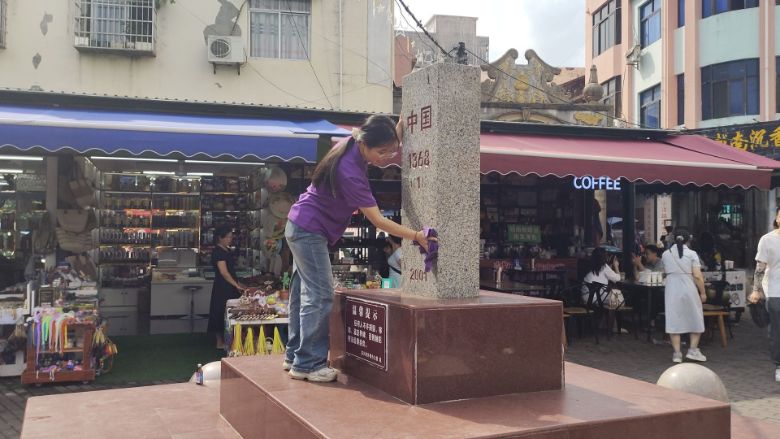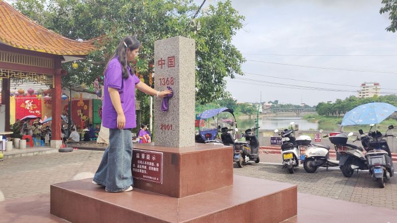 離開友誼公園,團隊來到東興口岸開展的“擦拭界碑憶初心,青春護邊擔使命”主題團日活動。團隊成員們認真仔細擦拭界碑上的塵土。界碑在革命歷史中與先輩的抗爭緊密相連,這一活動著提醒青年銘記先輩為領土完整付出的犧牲。接過歷史接力棒,讓革命精神在青年中落地生根,成為連接過去與未來的精神紐帶。