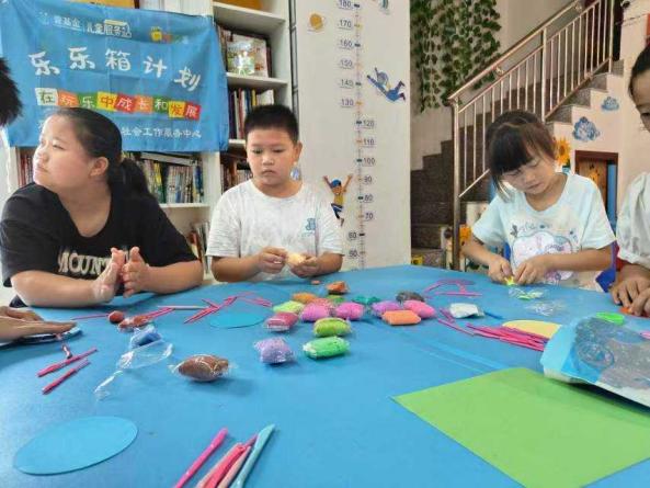 圖為實踐隊在支教。社區人員拍攝歡聲笑語填滿活動室的互動場景午后的陽光如同溫柔的薄紗,透過兒童服務站的玻璃窗,在地板上織就出斑駁的光影。志愿者剛將 “夏日粘土派對” 的橫幅掛好,三十雙明亮的眼睛便齊刷刷地聚焦過來,滿是期待與好奇。當志愿者拋出 “提到夏天最先想到什么” 的問題時,現場瞬間像被投入了一顆快樂的石子,激起層層歡樂的漣漪。前排扎著羊角辮的小姑娘,像只受驚的小鹿般猛地站起,奶聲奶氣卻又十分響亮地喊出 “冰鎮西瓜”,那聲音里滿是對夏日美味的向往;后排戴眼鏡的小男孩急得踮起腳,臉蛋漲得通紅,急忙補充道 “還有奶奶搖的蒲扇”,生怕自己的想法被遺漏。緊接著,更多稚嫩的聲音接連涌現:“游泳池的浪花!”“螢火蟲!”“冰棒紙沙沙響!”“樹上蟬的吱吱聲”…… 孩子們的童聲在屋里歡快地回蕩,如同靈動的音符,將整個活動室填滿了歡聲笑語。鼻尖汗珠難擋創作熱情分發粘土后,孩子們的小手指立刻忙碌起來,一場別開生面的手工創作就此拉開序幕。穿背帶褲的豆豆,神情專注地將藍色粘土放在掌心,雙手靈活地來回揉搓,不一會兒就把粘土揉成了光滑的圓球。他又小心翼翼地捏出一小塊白色粘土,用指尖輕輕按壓,巧妙地將其塑造成浪花的形狀,粘貼在藍色圓球旁 —— 原來他正在制作 “會冒泡泡的冰汽水”,那細致的手法,已然有了幾分手工小達人的模樣。扎著哪吒頭的朵朵,則拿著牙簽在粉色粘土上全神貫注地劃著紋路。她的眉頭微微蹙起,眼神緊緊鎖定在粘土上,每一次下簽都精準而有力,劃出的紋路細密又整齊。她抬起頭,帶著一絲小驕傲說:“這是媽媽買的水蜜桃冰淇淋,上面有芝麻碎呢。” 活動室里此時只剩下粘土被揉捏的窸窣聲,偶爾會傳來 “溫老師,能給我金色嗎” 的輕聲詢問。每個孩子都完全沉浸在自己的創作世界里,鼻尖滲出的細汗順著臉頰滑落,也顧不上抬手擦拭,那份對創作的投入與執著,令人心生感動。