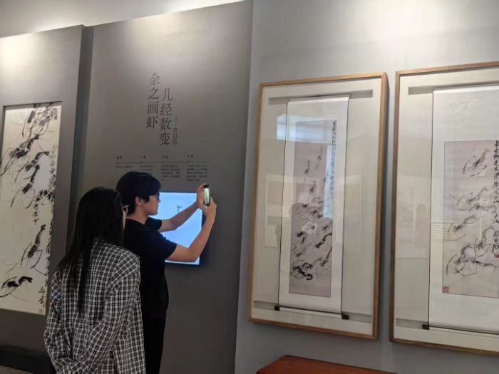 圖為三下鄉團隊成員欣賞齊白石《蝦》圖