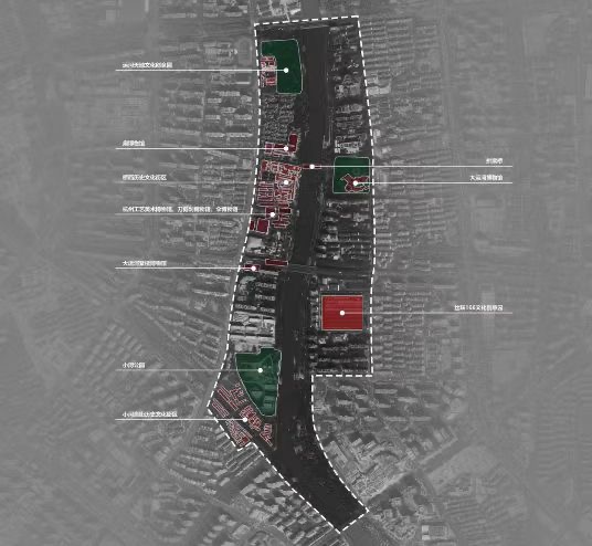 (在“中國大運(yùn)河”石碑前拍攝團(tuán)隊(duì)合照 拍攝:汪燕) 結(jié)束博物館的參觀學(xué)習(xí)后,實(shí)踐團(tuán)成員隨即深入橋西老工業(yè)帶進(jìn)行實(shí)地探訪。走訪過程中,團(tuán)隊(duì)成員得以近距離觀察區(qū)域內(nèi)遺存的老工業(yè)建筑風(fēng)貌,并對工業(yè)遺產(chǎn)的現(xiàn)狀與改造利用情況進(jìn)行了細(xì)致調(diào)研。基于實(shí)地走訪的所見所聞,團(tuán)隊(duì)精心繪制了一份詳實(shí)的橋西老工業(yè)帶工業(yè)遺產(chǎn)地圖。該地圖清晰標(biāo)注了包括運(yùn)河天地文化創(chuàng)意園(原杭州長征化工廠)、小河公園(原中石化小河油庫)等在內(nèi)的一系列重要工業(yè)改造項(xiàng)目的位置與信息。這份地圖不僅直觀呈現(xiàn)了當(dāng)日的調(diào)研路線與成果,也為后續(xù)深入研究橋西老工業(yè)帶的空間改造與社會(huì)評價(jià)奠定了扎實(shí)的基礎(chǔ),為本次實(shí)地調(diào)研活動(dòng)畫上了圓滿句號。