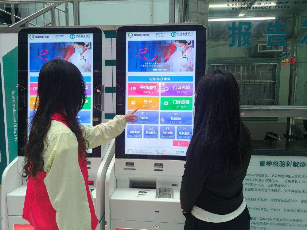 在門診大廳,學(xué)生們迅速投身志愿服務(wù)。協(xié)助醫(yī)護(hù)人員為患者測量血壓時(shí),他們仔細(xì)操作儀器,輕聲詢問患者身體狀況,將關(guān)愛融入每一個(gè)細(xì)節(jié);面對(duì)自助服務(wù)機(jī)前不知所措的患者,學(xué)生們耐心指導(dǎo),從掛號(hào)、繳費(fèi)到查詢檢驗(yàn)報(bào)告,一步步演示操作,幫助患者高效完成就醫(yī)流程,緩解了門診高峰期的服務(wù)壓力,也讓患者感受到便捷與溫暖。