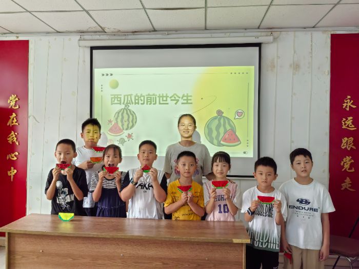 7月15日,山東大學學生春暉社雙棲星愿支教隊在濟南市南北社區支教點開展了以“粒籽記滄桑,玉露沁心田”為主題的支教活動。支教隊隊長崔嚴尹帶領孩子們通過教學與手工實踐結合的方式,讓孩子們在教學中對西瓜的前世今生有了基本的了解,并掌握了植物的普遍生長規律。