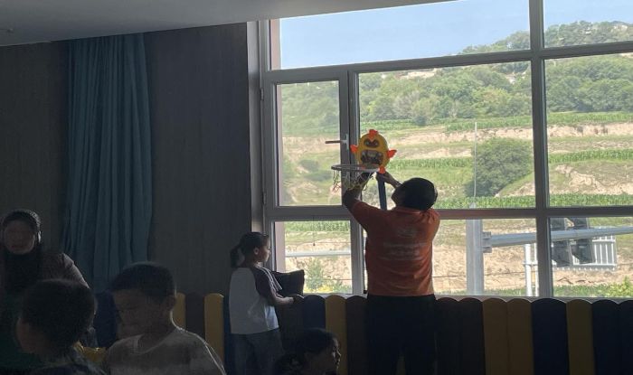 實踐隊員為小朋友們安裝活動器材。李雙辰 供圖