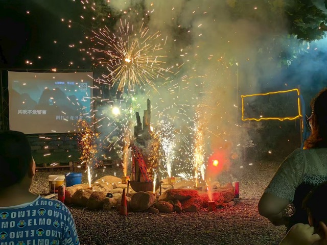 夜幕降臨,戶外晚餐環(huán)節(jié)有序進(jìn)行。家長(zhǎng)自發(fā)分工協(xié)作,部分負(fù)責(zé)擺放食材餐具,部分承擔(dān)燒烤任務(wù)。學(xué)生在指定區(qū)域就坐后有序用餐。餐畢,煙花燃放率先點(diǎn)燃夜空,絢爛的光影吸引眾人駐足觀賞。煙花結(jié)束后,篝火晚會(huì)正式開始,支教隊(duì)員、家長(zhǎng)和學(xué)生圍在篝火旁手拉著手跟著音樂節(jié)奏舞動(dòng),現(xiàn)場(chǎng)氛圍溫馨融洽。