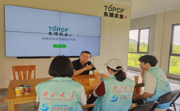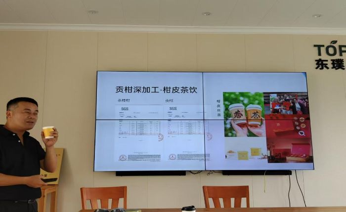 在調研過程中,隊員們還了解到,為了充分挖掘德慶貢柑的價值,公司對不同品質的貢柑進行了分類利用。約兩成品質優良的貢柑會通過直播等方式進行銷售,三四成品質一般的用于批發,剩余部分則用來制作貢柑的衍生產品,如柑皮用于制作柑皮茶、康養產品,果肉制成果汁,果肉渣則作為有機肥循環利用。此外,公司采用“公司+合作社+農戶”的種植模式,這種模式不僅有助于擴大公司規模、增加利潤,還為農戶提供了更多的發展機會,促進了當地農民增收。針對隊員們的提問,梁副總經理透露,政府對德慶貢柑農業給予了大力支持,公司也有發展“農文旅”融合項目的計劃,希望通過整合農業、文化和旅游資源,進一步提升產業附加值。
