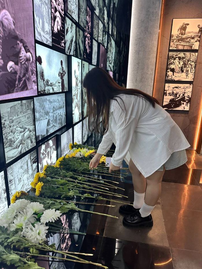 團(tuán)隊(duì)講解成員的講解結(jié)束后,實(shí)踐成員們都不由自主地嚴(yán)肅而整齊的擺放好了鮮花。