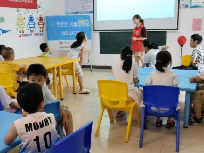 圖為實踐隊在支教。社區人員拍攝 夏日粘土派對:捏出快樂 “夏日粘土派對”就是讓孩子們自由創作。志愿者先問:“說到夏天,你們想到什么?”孩子們立刻興奮起來,搶著喊“西瓜!”“冰淇淋!”“荷花!”“游泳!”……答案充滿童趣。接著,孩子們用彩色粘土把想到的夏天事物捏出來。他們安靜又專注,不一會兒,充滿想象力的作品就誕生了:各式各樣的雪糕、有荷葉荷花的“小池塘”、還有小朋友把粘土粘在卡紙上做成“夏日風景畫”。最讓志愿者感動的是孩子們完成后的樣子。他們迫不及待地舉著作品跑過來,小臉滿是驕傲,興奮地介紹:“老師看!志愿者的彩虹雪糕!”“這是志愿者的荷花池,有小青蛙!”“志愿者捏了個大西瓜!”看著他們因為自己動手創造而流露出的純粹開心和自豪,志愿者心里也暖暖的,特別滿足。這次活動讓志愿者感受到,給孩子們簡單的材料、一個主題和自由空間,他們的創造力和動手能力就能帶來驚喜。他們認真制作的樣子和完成后的燦爛笑容,給了志愿者實實在在的快樂和成就感。圖為實踐隊在支教。社區人員拍攝 心得與體會這幾次志愿活動讓志愿者深刻體會到,和孩子們相處,最好的方式不是單方面講道理,而是和他們一起玩、一起體驗。用拍手跺腳的動作、一張白紙、一塊小粘土當“引子”,讓孩子們自己去感受音樂的節奏、理解霸凌的傷害、體驗創造的樂趣。他們回饋給志愿者的專注、快樂和生命力,就是最好的回報。做志愿工作,就是用真心和孩子們能懂、能參與的方式,陪伴他們,一起發現和創造那些簡單珍貴的快樂。這份樸實的快樂,志愿者會一直記得,也會繼續帶著這份心意去做更多。在兒童服務站的志愿活動中,志愿者嘗試將奧爾夫音樂教學法帶給了孩子們。奧爾夫音樂強調通過身體動作、節奏和即興來體驗音樂本身。志愿者先向孩子們簡單介紹了這個理念,接著重點教了他們“奧爾夫八聲勢”——八個基礎的身體打擊樂動作,如拍手、拍腿、跺腳、捻指等。孩子們學得很認真,雖然動作一開始有些生疏,但興趣很高。當大家基本掌握了動作后,志愿者將它們與熟悉的兒歌《數鴨子》結合了起來。隨著歡快的音樂響起,孩子們開始嘗試用剛學會的聲勢動作來“演奏”節奏。看著他們專注地聽著音樂,努力協調手腳打出正確的聲勢,雖然節奏偶有混亂,但每個人臉上都洋溢著參與的熱情和快樂,小手小腳跟著音樂舞動,教室里充滿了笑聲和節奏聲。那一刻志愿者深刻體會到,奧爾夫音樂的魅力就在于它讓音樂變得如此直接、有趣和可參與,讓孩子們用最自然的方式感受節奏與旋律的快樂。音樂真的可以屬于每一個人,從最簡單的身體律動開始。這次實踐,志愿者和孩子們一起收獲了一份純粹的快樂。