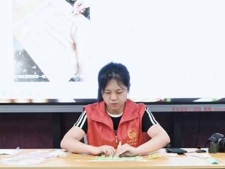 巧手編織顯匠心“先取二十五根竹篾作為經線,像編織小辮子一樣將緯線穿插進去……”王晶坐在孩子們中間,耐心地手把手演示竹扇的基礎編織方法??此坪唵蔚慕徊鎰幼?,實則考驗著耐心與巧思——有的孩子剛編了兩下就弄折了竹篾,急得直跺腳;王晶笑著接過竹絲,指尖翻飛間,原本散亂的竹篾逐漸顯露出扇面的輪廓。“這就是咱們老祖宗常說的‘慢工出細活’。”她趁機教導孩子們,安溪竹藤編之所以能成為國家級非物質文化遺產,正是依靠一代代手藝人堅守耐心、磨礪匠心的結果。