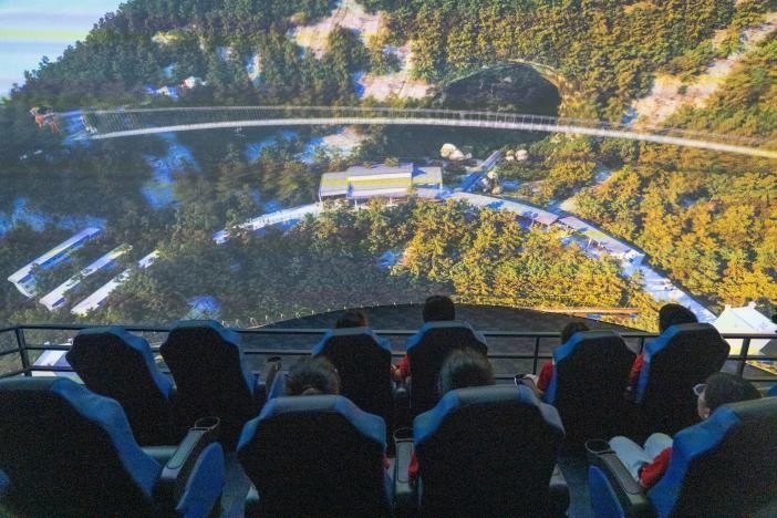 在元宇宙沉浸區中,隊員們戴上3D眼鏡體驗飛躍北川模擬影片。影片開篇打開飛機艙門,與現實中的永昌機場跑道完美銜接,引來陣陣驚嘆。隊員以第一視角游覽藥王谷,禹王橋等地。此次沉浸式體驗,既展示了航空魅力,又傳播了羌族文化,是文旅融合的典范。