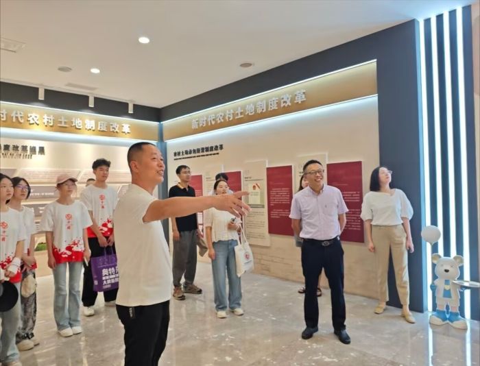 步入莊重的農村土地改革陳列館,時光仿佛在此沉淀。在上苓村黨委書記、村委會主任王明軍的生動講解下,隊員們開啟了一場跨越時空的深度“對話”。泛黃的舊報紙、珍貴的原始文獻、承載歲月印記的紀念冊……一件件展品無聲地訴說著金魚鎮那段敢為人先的崢嶸歲月。從大膽突破集體統一耕作模式,首創“分組作業、定產定工”,到逐步探索包產到組、包產到戶的實踐路徑,每一步都鐫刻著改革者的勇氣與智慧。