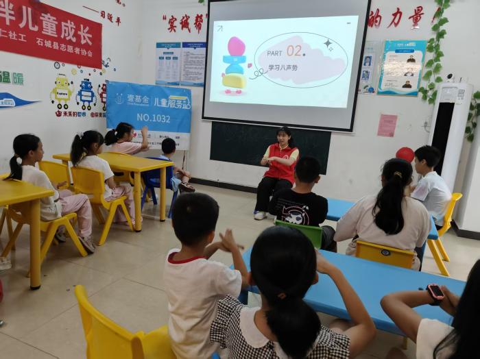 圖為實踐隊在支教,社區(qū)人員拍攝通訊員 蔣尚熹 朱梓瑜 何淑蓉