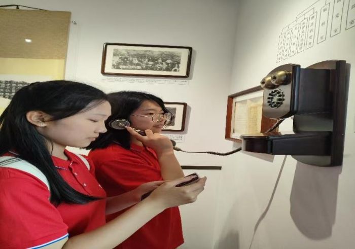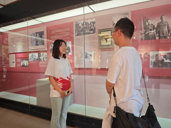 陳列柜中,一件件珍貴文物如同歲月長(zhǎng)河中的璀璨星辰:親筆修改的文件稿字斟句酌,透露出對(duì)國家大事的殫精竭慮;與國際友人往來的信函情真意切,展現(xiàn)其作為“民間外交家”的卓越風(fēng)采;樸素的衣物、簡(jiǎn)樸的生活用品,無聲訴說著她身居高位卻心系民眾的崇高品格。劉元旭同學(xué)向大家介紹:“宋慶齡先生的一生,完美詮釋了‘永遠(yuǎn)和黨在一起’的堅(jiān)定信念和‘為新中國奮斗’的畢生追求。她以非凡的智慧、博大的愛心和女性的堅(jiān)韌,在革命洪流中勇立潮頭,為新中國的誕生、為婦女兒童事業(yè)、為世界和平傾注了全部心血。她的家國情懷和無私奉獻(xiàn),是跨越時(shí)空的精神財(cái)富。