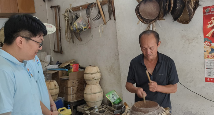 為挖掘巴渝大地獨特的民族文化基因,傳承非物質文化遺產的時代價值,筑牢文化自信根基,助力傳統文化創新性發展。2025年7月13日東方語學院“尋韻昌州古郡,煥新永川鄉脈”實踐團奔赴重慶市永川區五間鎮,以走訪調研、藝術交流、沉浸式體驗的方式,探訪百年堂鼓制作工坊,深度解碼永川非遺名片——五間堂鼓的百年傳承密碼與活力新生路徑。