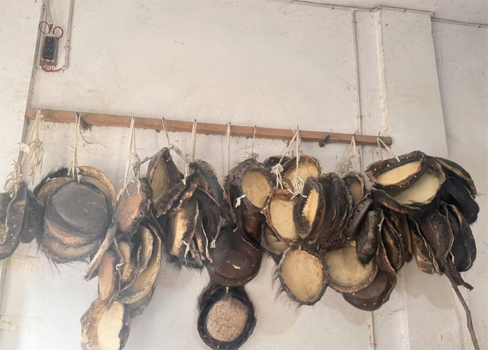 (圖為非遺師傅制鼓所用牛皮 攝 楊藝平)
